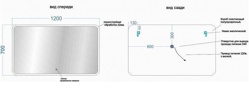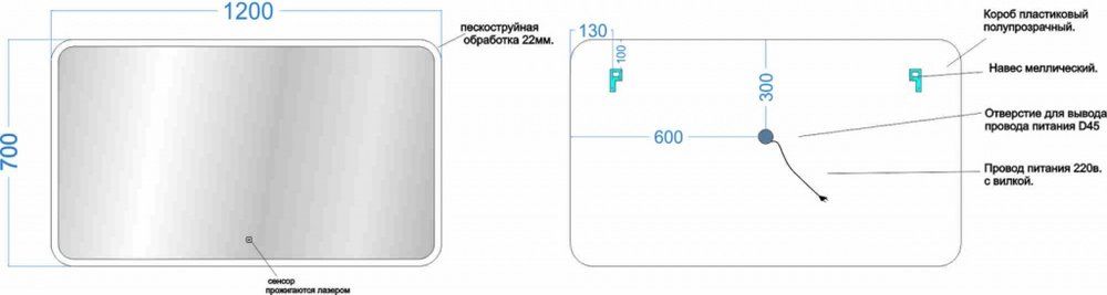 Зеркало с подсветкой Sancos Arcadia AR1200 120см с сенсорным выключателем