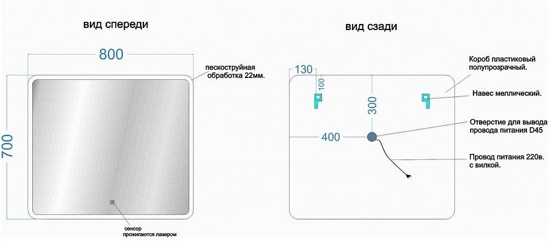 Тип:зеркало с подсветкой