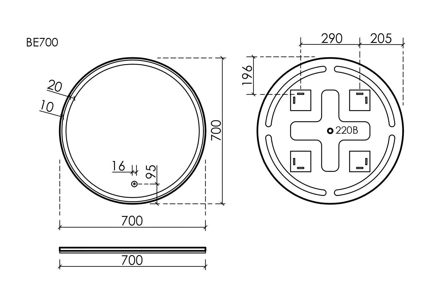 - Зеркало круглое с фронтальной подсветкой