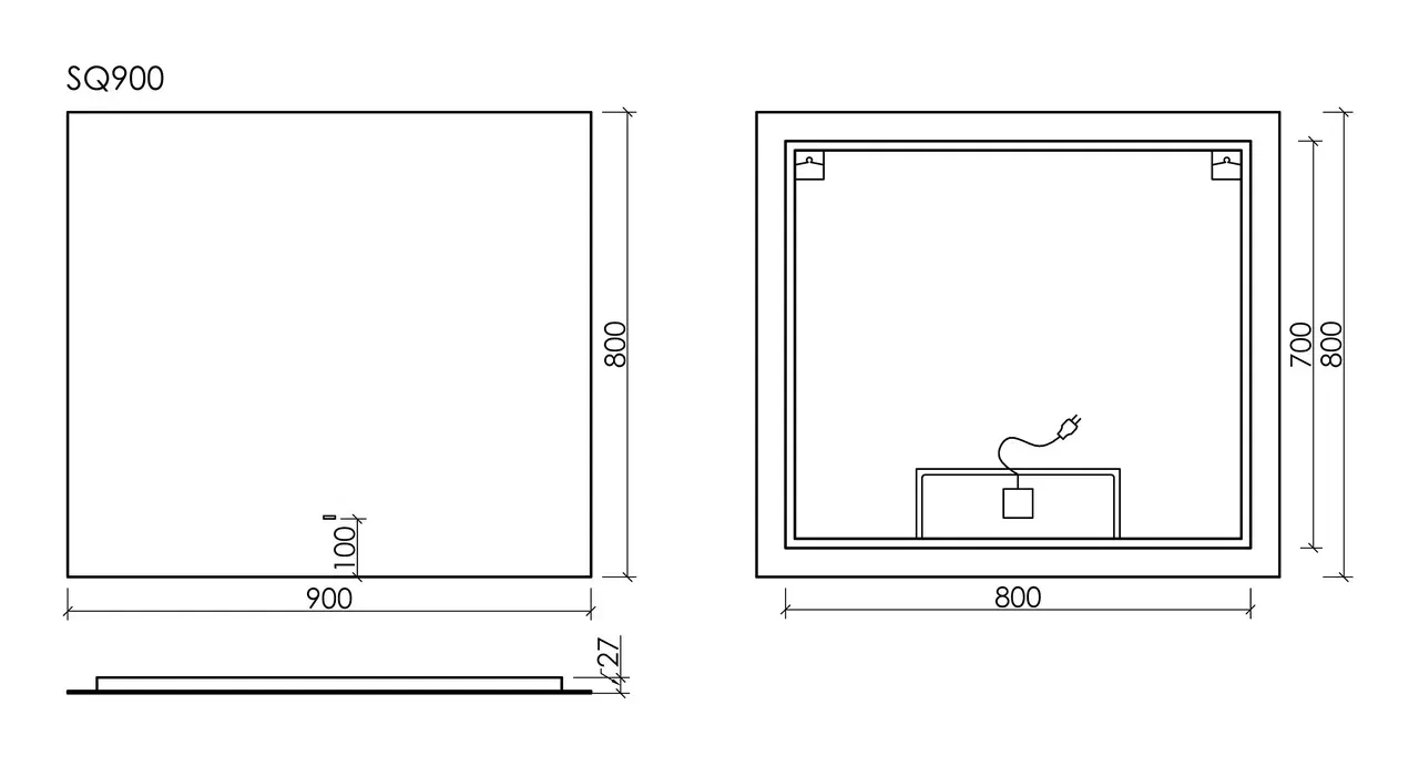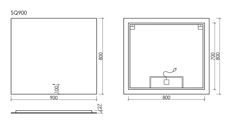 Зеркало с подсветкой Sancos Square SQ900 90см