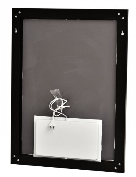 Зеркало настенное KANTO BLACK 70, 700х1000 с LED подсветкой и сенсорным выключателем. Алюминиевый матовый профиль черного цвета. Потребляемая мощность 26 W. Класс защиты IP44. Стеклянное зеркальное полотно Mirox производства компании AGC Glass Russia, принадлежащей международной группе мирового лидера по производству стекла AGC Inc. LED подсветка, сенсорный выключатель, блок питания, крепление зеркала (кронштейн с крюком), клеммник, сетевой шнур. Материал корпуса - Анодированный алюминий (профиль) черного цвета, задняя стенка пластик (АБС). Можно использовать в любом помещение: ванная и туалет, прихожая, спальня, гостиная