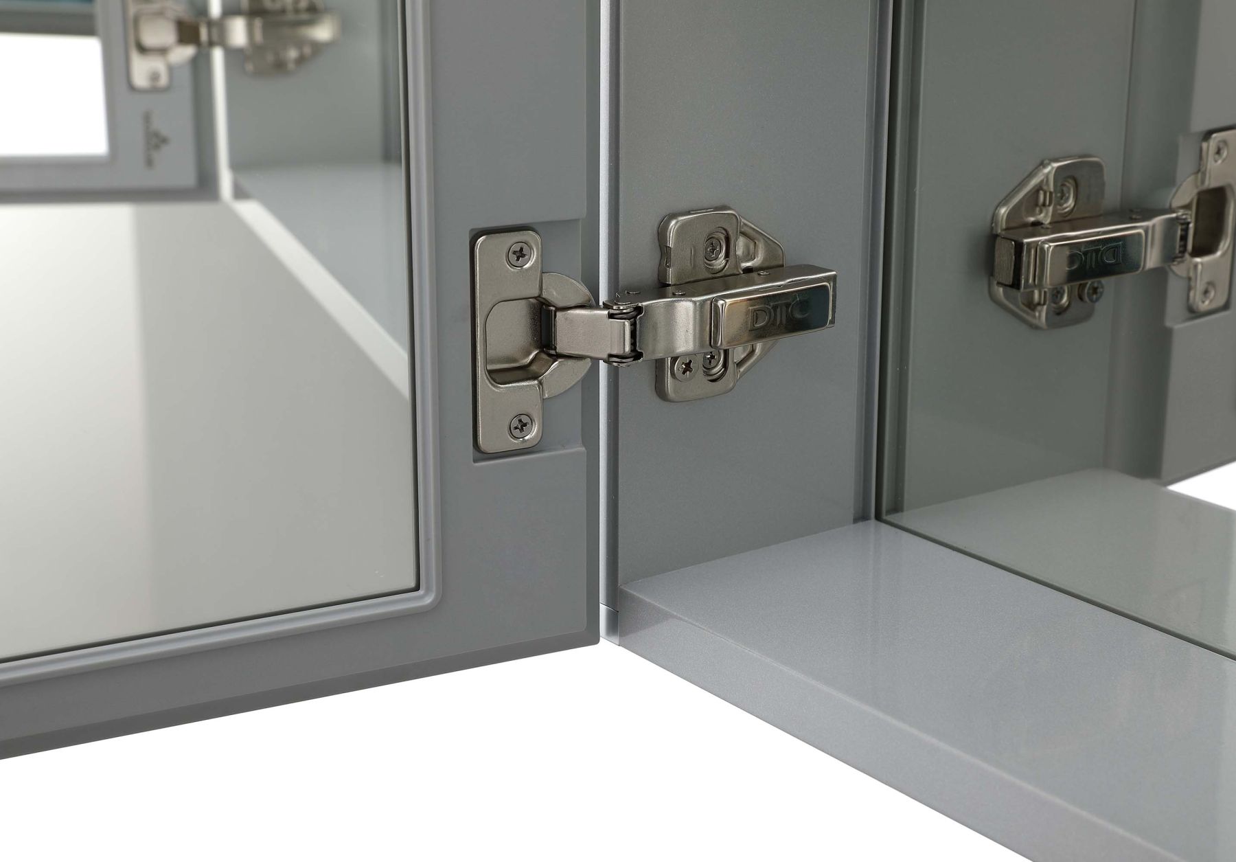 Петли DTC с доводчиком и углом открывания на 110 градусов обеспечивают плавное и бесшумное открытие дверей, что делает использование шкафа комфортным на протяжении всего срока эксплуатации. Конструкция шкафа выполнена из влагостойких материалов, что гарантирует его долговечность даже в условиях повышенной влажности.