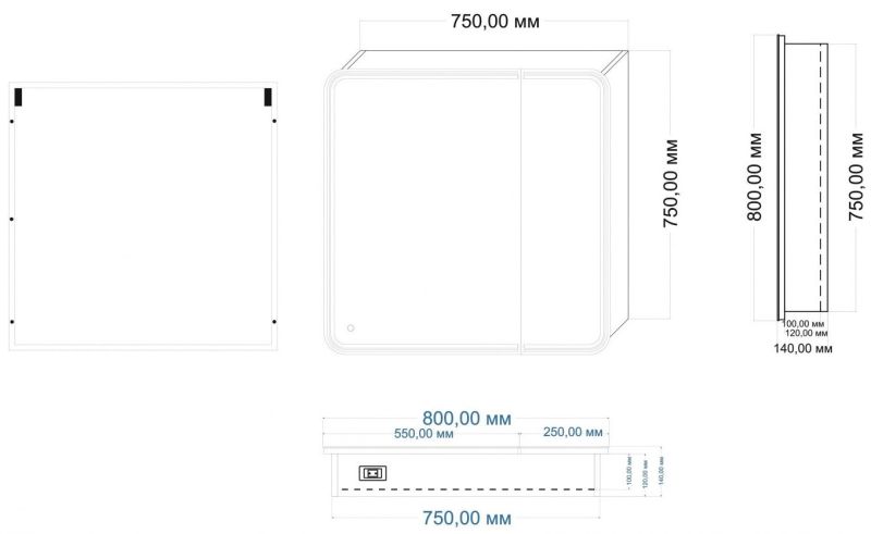 • Размер шкафчика: 750х750х100 мм