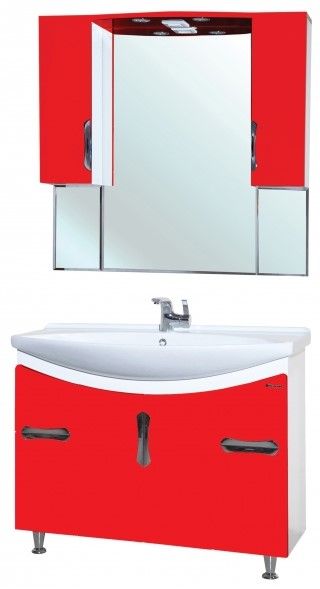 В производстве используют только качественные влагостойкие материалы (ВЛДСП), в составе которых полностью отсутствуют опасные вещества. Данная серия выполнена в эксклюзивном дизайнерском решении в лучших традициях современного стиля. Красный, основной цвет исполнения Bellezza, гармонирующий с большинством интерьерных решений. Шкаф-зеркало предусматривает удобную и вместительную систему хранения. Зеркало Bellezza оснащено галогеновой подсветкой, позволяющей комфортно провести утренние процедуры.