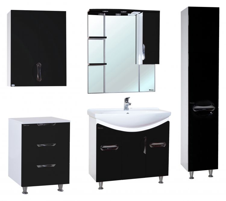В производстве используют только качественные влагостойкие материалы (ВЛДСП), в составе которых полностью отсутствуют опасные вещества. Данная серия выполнена в эксклюзивном дизайнерском решении в лучших традициях современного стиля. Черный, основной цвет исполнения Bellezza, гармонирующий с большинством интерьерных решений. Шкаф-зеркало предусматривает удобную и вместительную систему хранения. Зеркало Bellezza оснащено галогеновой подсветкой, позволяющей комфортно провести утренние процедуры.