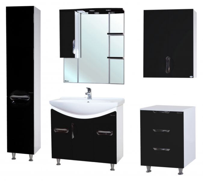 В производстве используют только качественные влагостойкие материалы (ВЛДСП), в составе которых полностью отсутствуют опасные вещества. Данная серия выполнена в эксклюзивном дизайнерском решении в лучших традициях современного стиля. Черный, основной цвет исполнения Bellezza, гармонирующий с большинством интерьерных решений. Шкаф-зеркало предусматривает удобную и вместительную систему хранения. Зеркало Bellezza оснащено галогеновой подсветкой, позволяющей комфортно провести утренние процедуры.