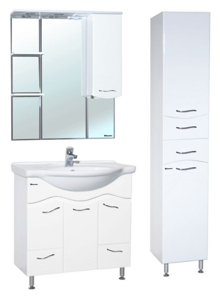 В производстве используют только качественные влагостойкие материалы (ВЛДСП), в составе которых полностью отсутствуют опасные вещества. Данная серия выполнена в эксклюзивном дизайнерском решении в лучших традициях современного стиля. Белый, основной цвет исполнения Bellezza, гармонирующий с большинством интерьерных решений. Шкаф-зеркало предусматривает удобную и вместительную систему хранения. Зеркало Bellezza оснащено галогеновой подсветкой, позволяющей комфортно провести утренние процедуры.