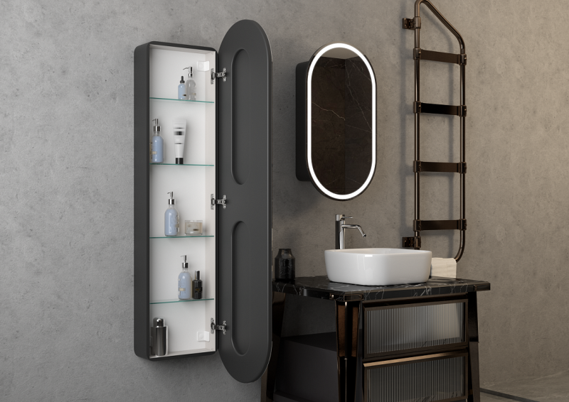 Зеркало-шкаф с подсветкой Continent Elmage Black МВК048 45см чёрный