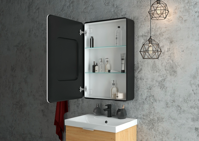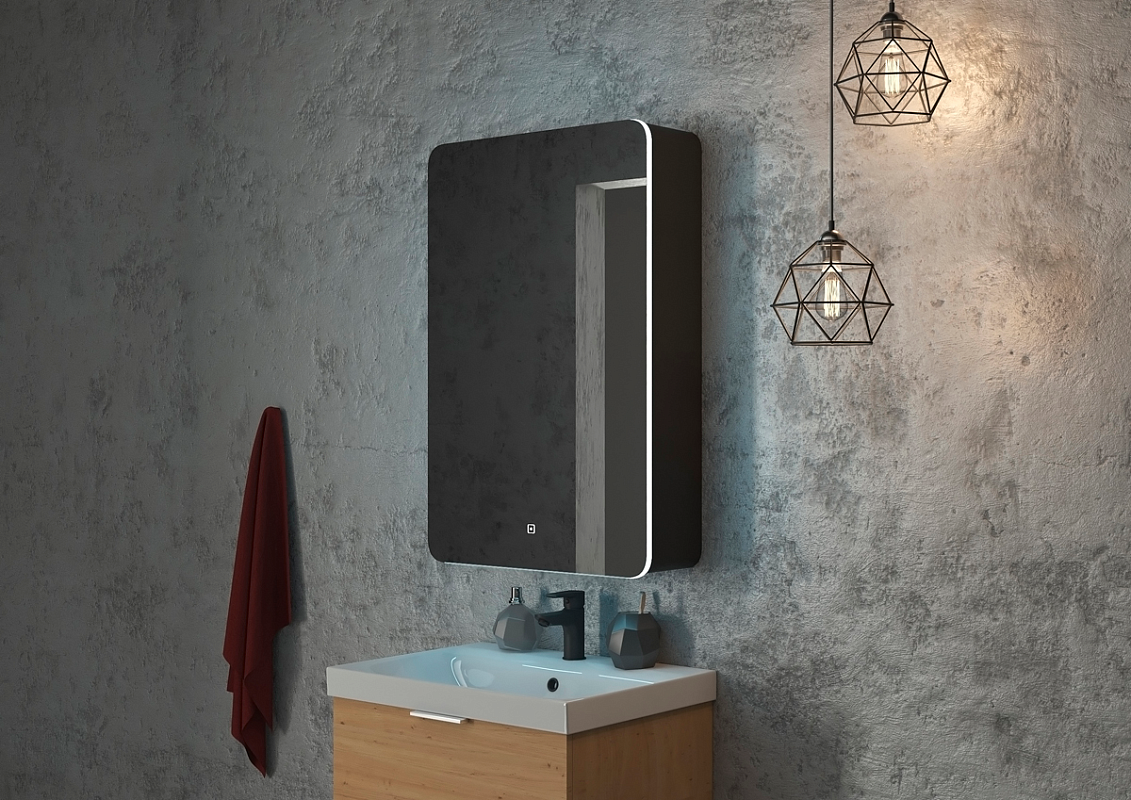 Зеркало-шкаф "Eltoro black LED" 560х850LED подсветка 6000К; сенсорный включатель с функцией димирования, материал корпуса - МДФ, цвет корпуса - черный