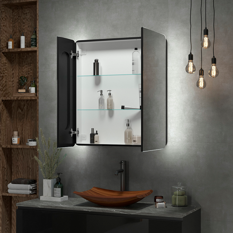 Зеркало-шкаф с подсветкой Continent Eltoro Black МВК114 76см чёрный