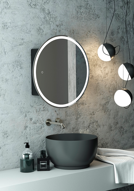 Зеркало-шкаф "Torneo Black LED" d 800 с подсветкойLED подсветка 6000К; сенсорный включатель с функцией димирования, материал корпуса- МДФ, цвет корпуса - черный, реверсивные крепления, розетка на корпусе