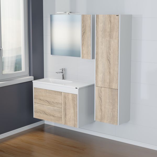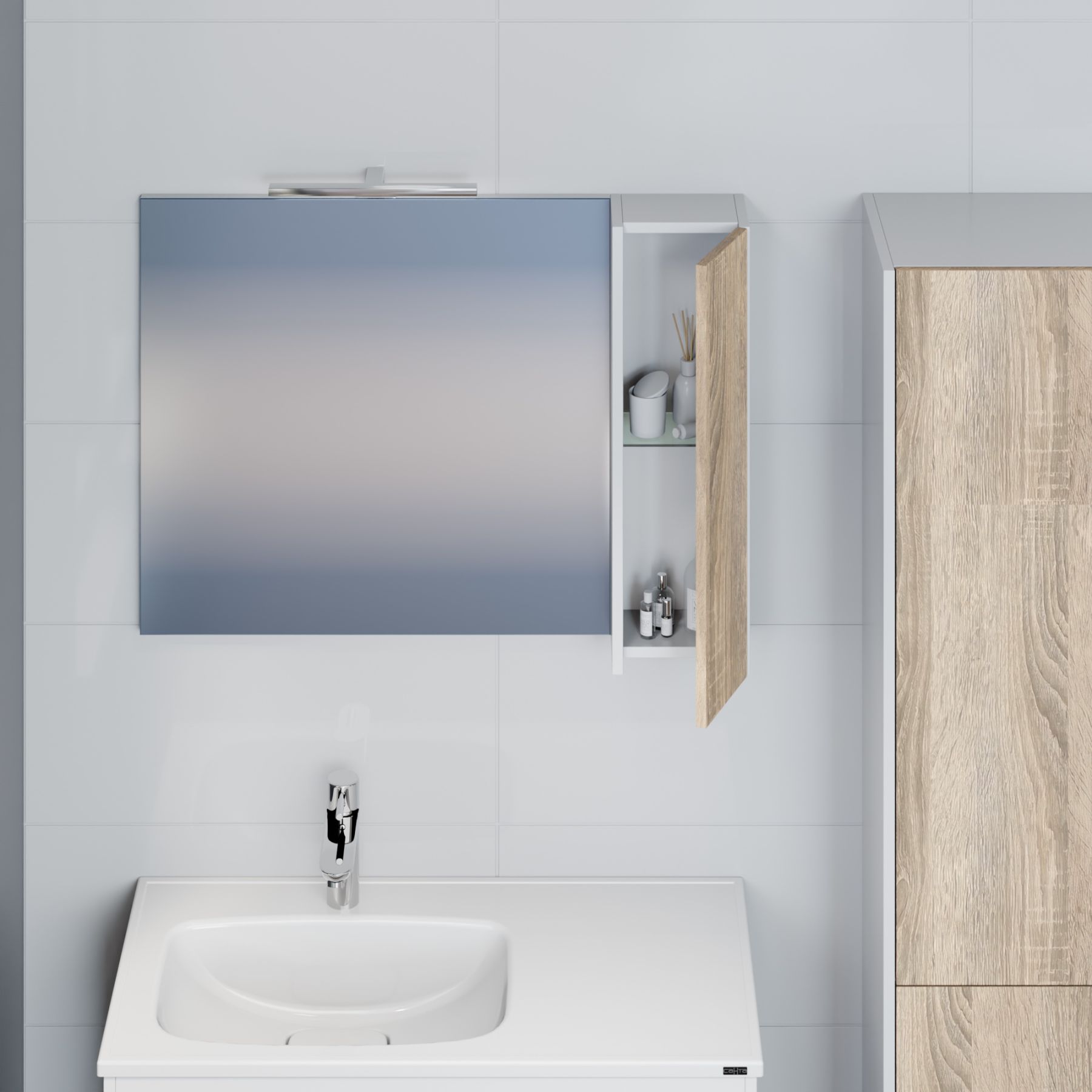Комплектация: петли плавного закрывания, полочки ЛДСП, подвесы, светильник, боковины шкафчика окрашены матовой эмалью